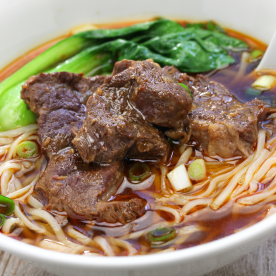 Made with tender beef chunks simmered in a rich broth infused with a blend of spices, often prepared in a braised style with wide wheat noodles. This dish offers savory and hearty flavors that make it a comforting Taiwanese classic.